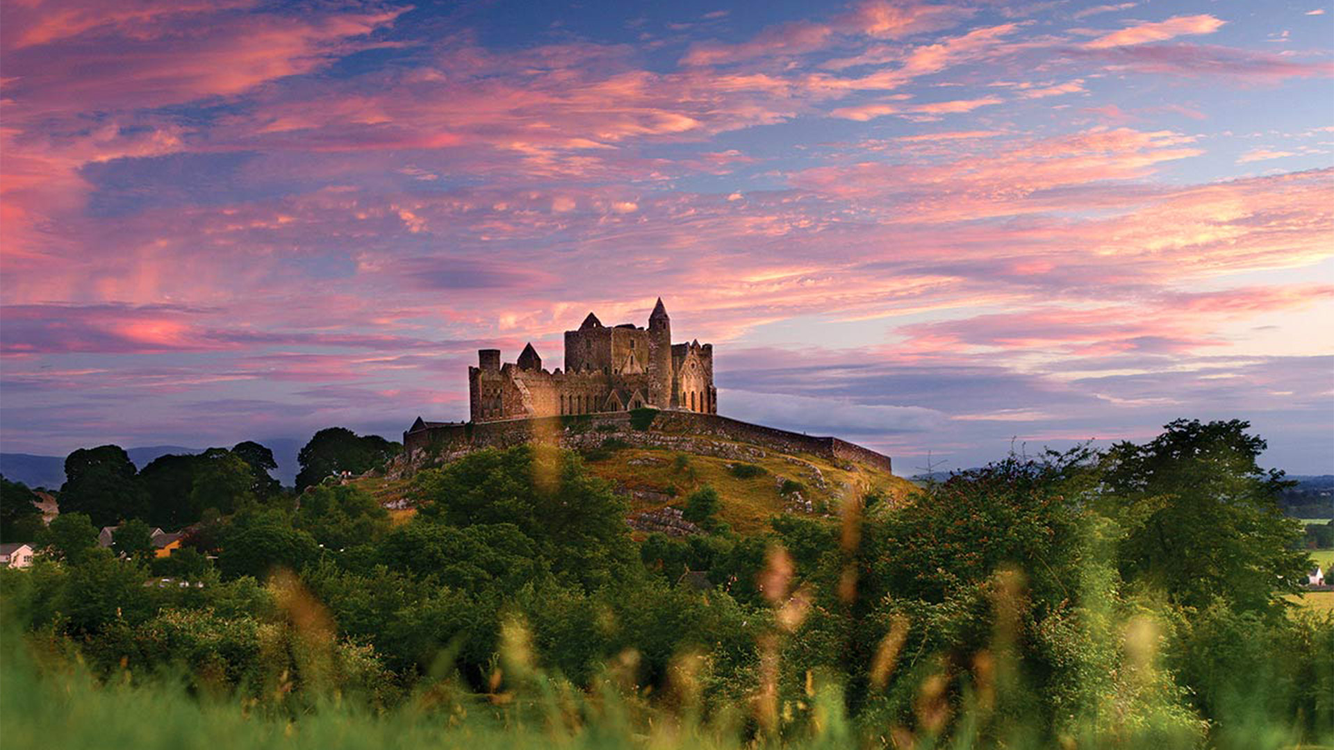 The imposing Cahir Castle set on a rocky outcrop feels especially atmospheric as the countryside glows in auburn tones.